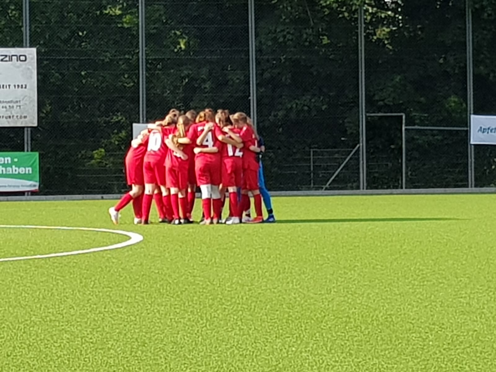 Dabei war das Spiel beim Tabellen-Achten aus Frankfurt-Bornheim alles andere als ein leichtes Unterfangen für die Mädels von Trainer Henrik Geiger. Sowohl Amèlie Steiner als auch Alia Abbo, Emma Marx, Nele Müller und Elina Schmidt mussten beim letzten Saisonspiel verletzungsbedingt passen, was dem breit aufgestellten JFV-Kader jedoch zunächst keine Probleme bereitete. In der Hitze des sonnengefluteten Kunstrasens im Frankfurter Osten waren es die in rot gekleideten Dreieicherinnen, die die erste Chance zu verzeichnen hatten. Ein langer Ball von Torhüterin Janek führte in der 3. Spielminute zur ersten Bewährungsprobe für Bornheims Schlussfrau, nachdem Hilgenfeld die Kugel noch gefährlich mit dem Kopf abfälschte.