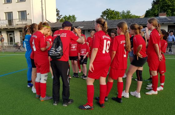 Die Freude der mitgereisten Eltern fand im Anschluss kein Halten mehr und auch die Spielerinnen machten den SCHD-Mannschaftsbus mit lauter Musik zum Party-Hotspot. Nach einem durchwachsenen ersten Durchgang drehte der JFV mit einer überragenden zweiten Halbzeit das Spiel, was auch Meister-Trainer Geiger festhielt: „Die erste Halbzeit haben wir regelrecht geschlafen, in der zweiten Hälfte waren wir dann bärenstark. Das Spiel war ein Spiegelbild der ganzen Saison. Wir sind glücklich, dass wir das Spiel als gewinnen konnten. Auch die Aktion mit der Fahrt im SCHD-Mannschaftsbus war sensationell. Das ist eine Geschichte, an die sich die Mädels noch in Jahren erinnern und nie vergessen werden.“